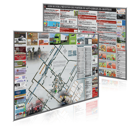Et ce n’est pas tout ! La municipalité est libre d’ajouter tout texte pertinent (coordonnées, mot de bienvenue !) à ce qui, après quelques lignes à peine, est déjà beaucoup plus qu’une carte ! Citons en priorité les commanditaires car ils sont très friands de ces éditions largement diffusées… Grâce à leur présence, le résident trouve toutes les informations dont il a besoin régulièrement, le nouvel-arrivant voit d’un seul coup d’œil tous les services professionnels locaux disponibles, le touriste plonge dans votre ville en une seconde, le visiteur de passage conserve la publication le temps de son séjour et pour le prochain…